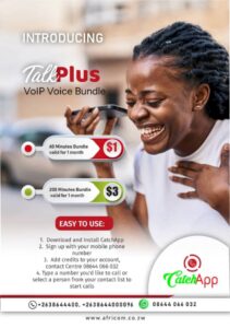 Africom ine ma VoIP bundles ayinayo 2. One re dhora rekuti unopihwa 60 minutes, then rimwe re 3 dollars rekuti unopihwa 200 minutes. Ma packages ese anoita expire after one mwedzi. Kuti utenge ma bundles acho unobata customer support yavo or kushanya ma hofisi avo.